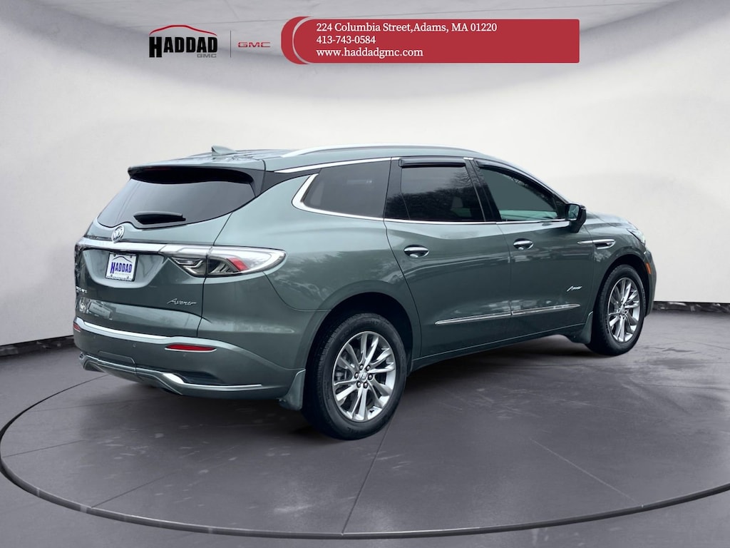 The selling price of the vehicle is market price plus the dealer documentation fee of $599, and the title fee of $5.00 that dealers may charge to procure the certificate of title. This vehicle may have an open recall. The dealer will make all reasonable attempts to clear this recall. If parts or non-remedy repairs are not available there may be a continued claim to monitor. Avenir Technology Package (Chassis Continuously Variable Real Time Damping, Enhanced Avenir Design Headlamps, and Premium Ride Suspension), Front Mounting License Plate Bracket Package, Memory Package, Preferred Equipment Group 1SP (2nd Row Heated Outboard Seats and Front & Rear Park Assist), AWD, 10 Speakers, 3.49 Axle Ratio, 3rd row seats: split-bench, 4-Wheel Disc Brakes, 6-Way Power Front Passenger Seat Adjuster, 7-Passenger Seating, 8-Way Power Driver Seat Adjuster, ABS brakes, Air Conditioning, Alloy wheels, AM/FM radio: SiriusXM with 360L, Auto High-beam Headlights, Auto tilt-away steering wheel, Auto-dimming door mirrors, Auto-dimming Rear-View mirror, Automatic temperature control, Bose Performance-Enhanced 10-Speaker System, Brake assist, Bumpers: body-color, Compass, Delay-off headlights, Driver 4-Way Power Lumbar Seat Adjuster, Driver door bin, Driver vanity mirror, Dual front impact airbags, Dual front side impact airbags, Electronic Stability Control, Emergency communication system: OnStar and Buick connected services capable, Exterior Parking Camera Rear, Four wheel independent suspension, Front anti-roll bar, Front Bucket Seats, Front Center Armrest, Front dual zone A/C, Front Passenger 4-Way Power Lumbar Seat Adjuster, Front reading lights, Fully automatic headlights, Garage door transmitter, Heads-Up Display, Heated door mirrors, Heated Driver & Front Passenger Seats, Heated front seats, Heated rear seats, Heated steering wheel, Illuminated entry, Leather steering wheel, Low tire pressure warning, Memory seat, Navigation System, Not Equipped w/Front & Rear Park Assist, Occupant sensing airbag, Outside temperature display, Overhead airbag, Overhead console, Painted Front & Rear Splash Guards (LPO), Panic alarm, Passenger door bin, Passenger vanity mirror, Perforated Leather-Appointed Seat Trim, Power door mirrors, Power driver seat, Power Liftgate, Power moonroof, Power passenger seat, Power steering, Power windows, Premium audio system: Buick Infotainment System, Radio data system, Radio: Buick Infotainment Sys AM/FM Stereo w/Nav, Rain sensing wipers, Rear air conditioning, Rear anti-roll bar, Rear reading lights, Rear window defroster, Rear window wiper, Remote keyless entry, Roof rack: rails only, Security system, SiriusXM w/360L, Speed control, Speed-sensing steering, Spoiler, Steering wheel memory, Steering wheel mounted audio controls, Tachometer, Telescoping steering wheel, Tilt steering wheel, Traction control, Trip computer, Turn signal indicator mirrors, Variably intermittent wipers, Ventilated Driver & Front Passenger Seats, Ventilated front seats, Voltmeter, Wheels: 20 w/Pearl Nickel Finish, and Wireless Apple CarPlay/Wireless Android Auto.Recent Arrival!Clean CARFAX.2023 Buick Enclave Avenir Sage Metallic3.6L V6 SIDI VVT 9-Speed Automatic AWDAWD.17/25 City/Highway MPG